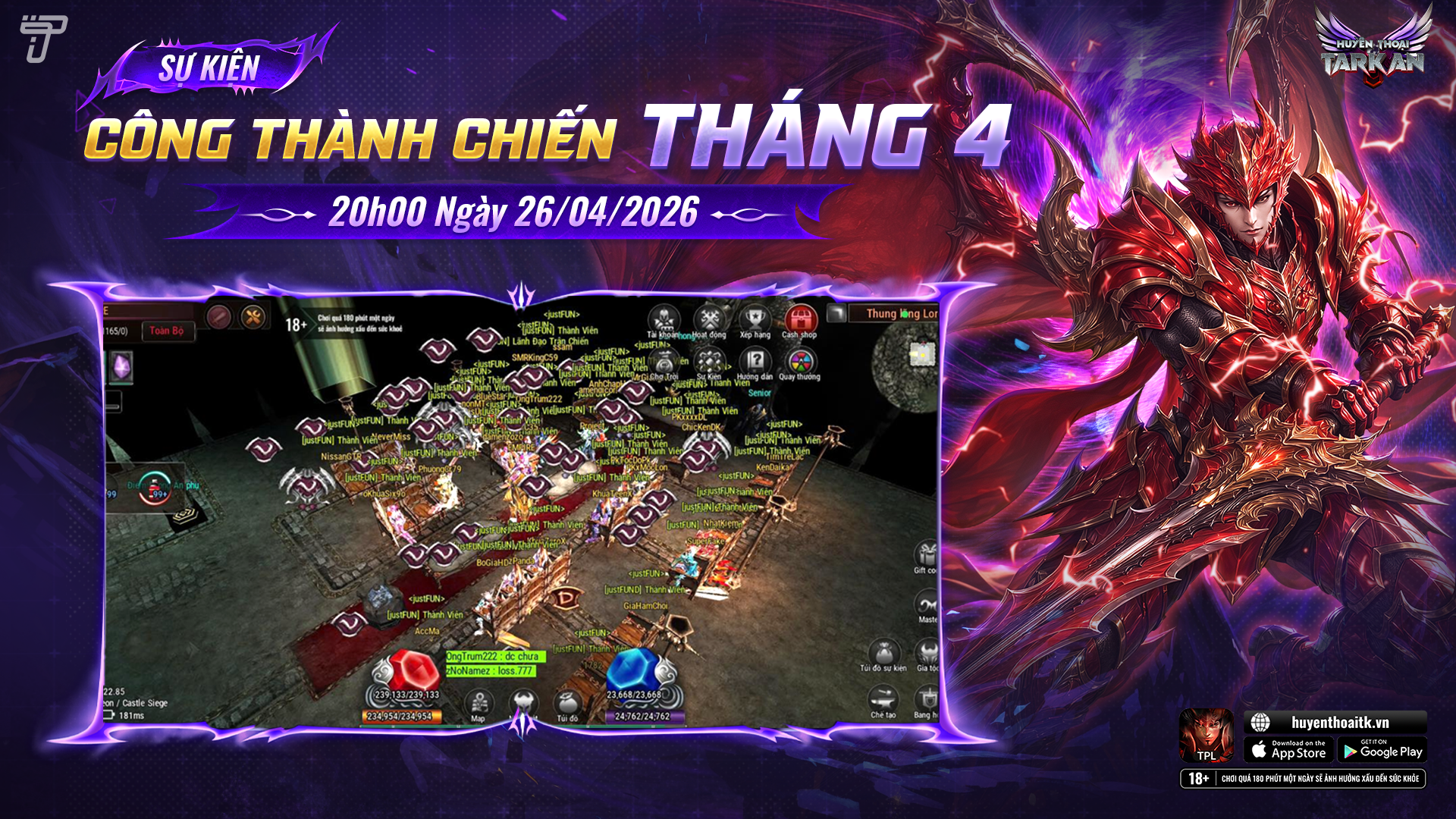 Công Thành Chiến 2 máy chủ Tháng 4 | MU: Huyền Thoại Tarkan Mobile