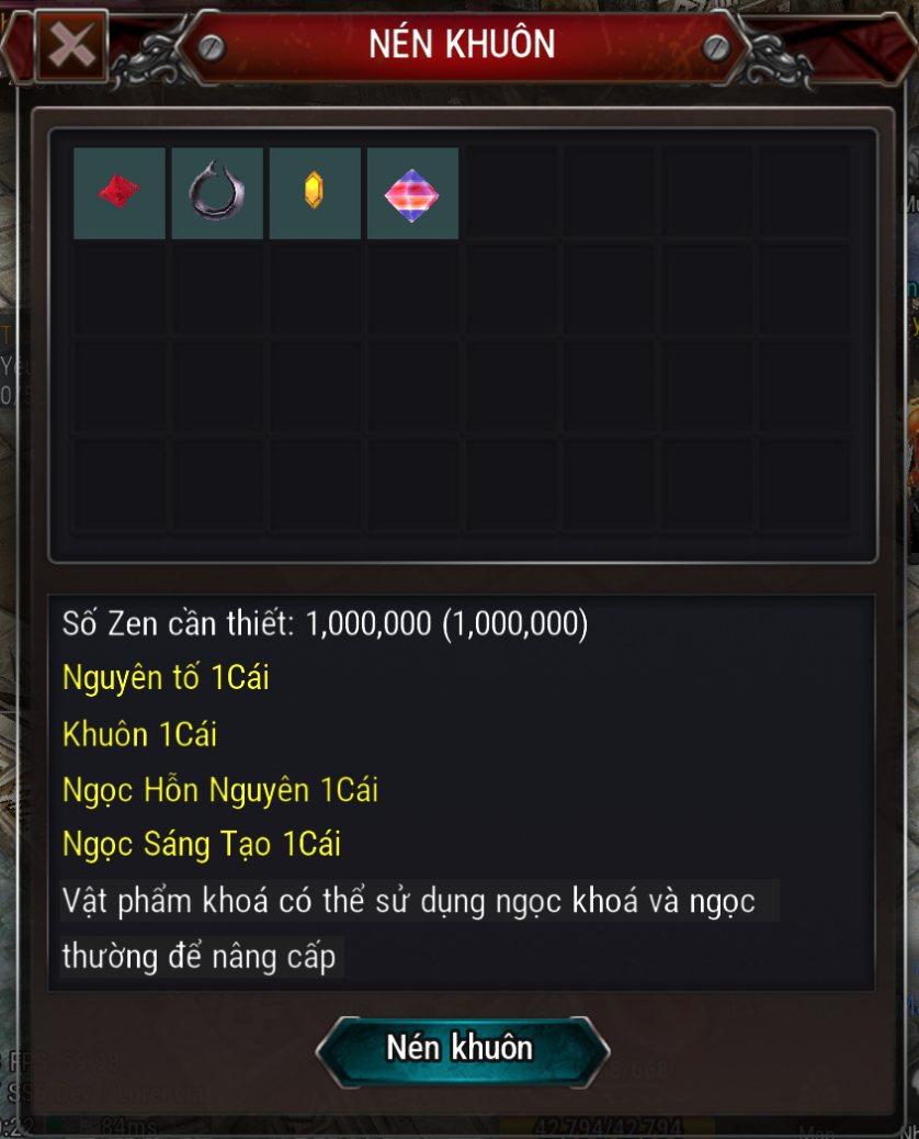 | Khuôn | Có thể nhặt trong lúc đánh quái | 1 |